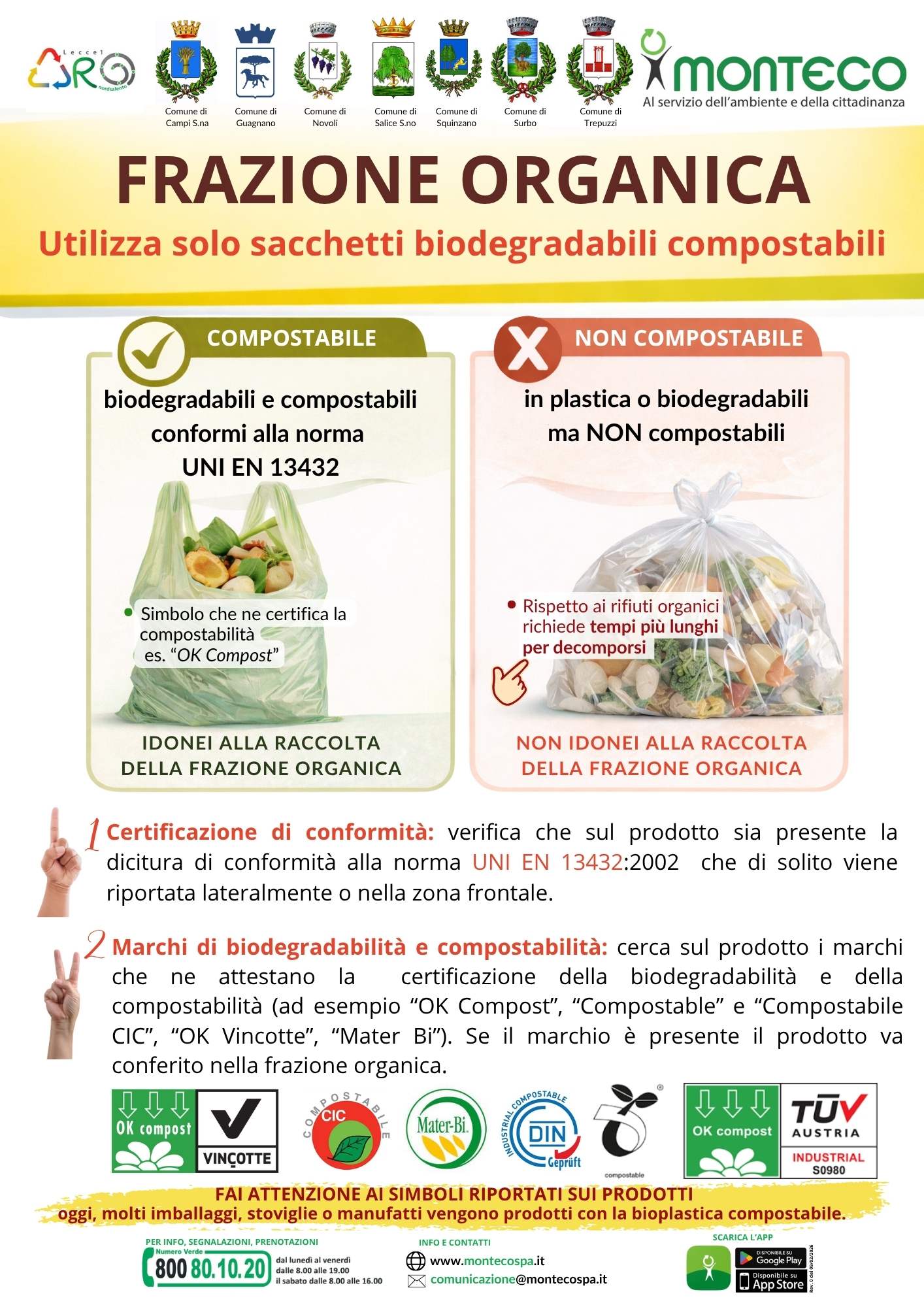 Occorre invece fare attenzione ai prodotti che riportano solo la dicitura “biodegradabile”: un materiale biodegradabile, infatti, non è automaticamente compostabile. Per il conferimento della frazione organica è necessario che il sacchetto sia espressamente indicato come compostabile.